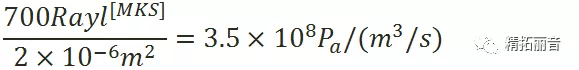 这里的声阻,实际是比流阻, R = Δp / U 这里的Δp是网布两面的压力差,u流速,参数跟面积无关;在特定面积上的阻尼,表示为R = Δp / U , 这里的U是体积流速。